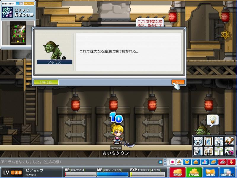 なんとか生命の洞窟で目的の物をゲットし、再びシャモスさんのところへ。